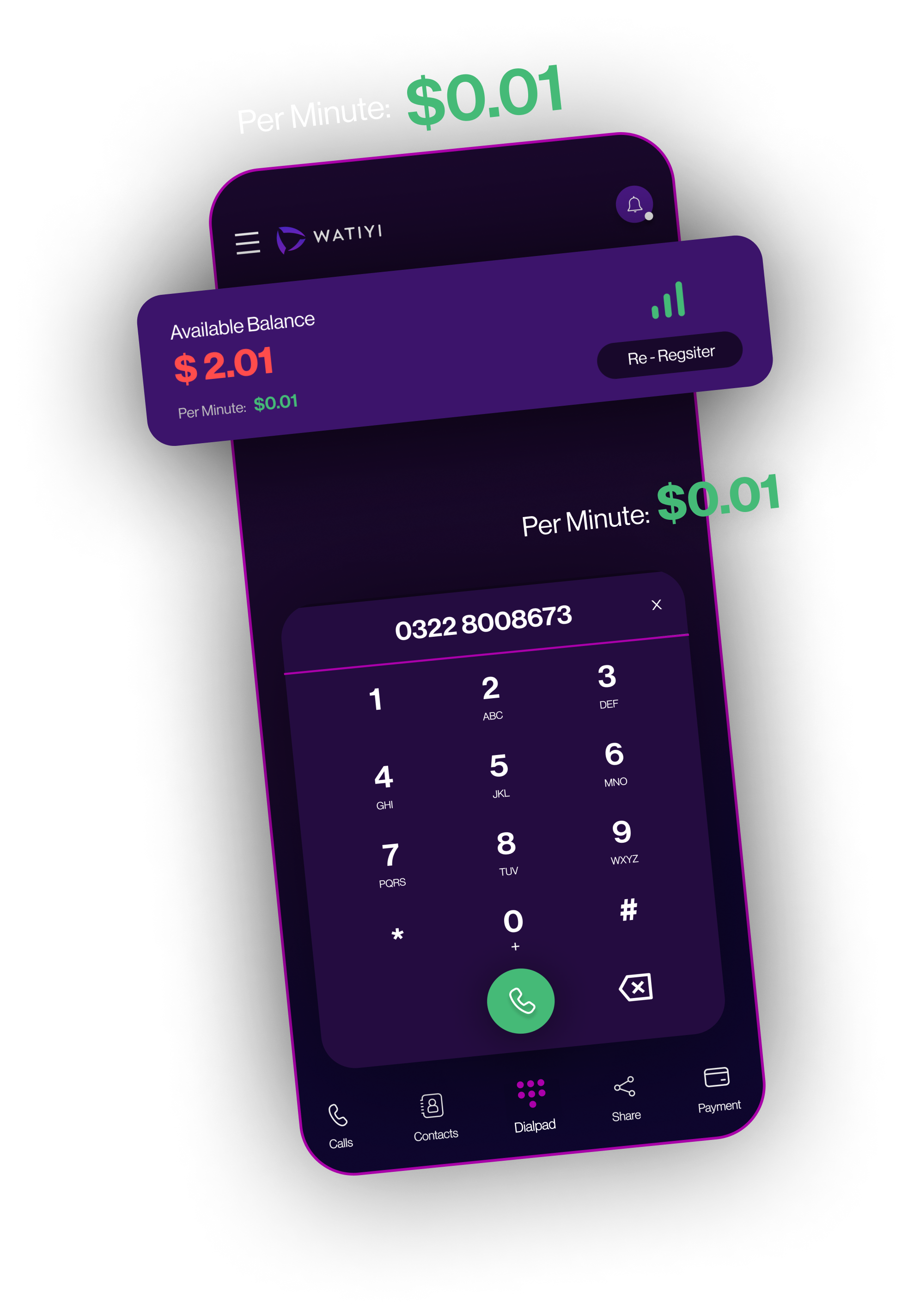 Get Watiyi app now and get the best rates for internatioinal calls on the go. We have best calling rates of $0.01 per minute on any location worldwide.